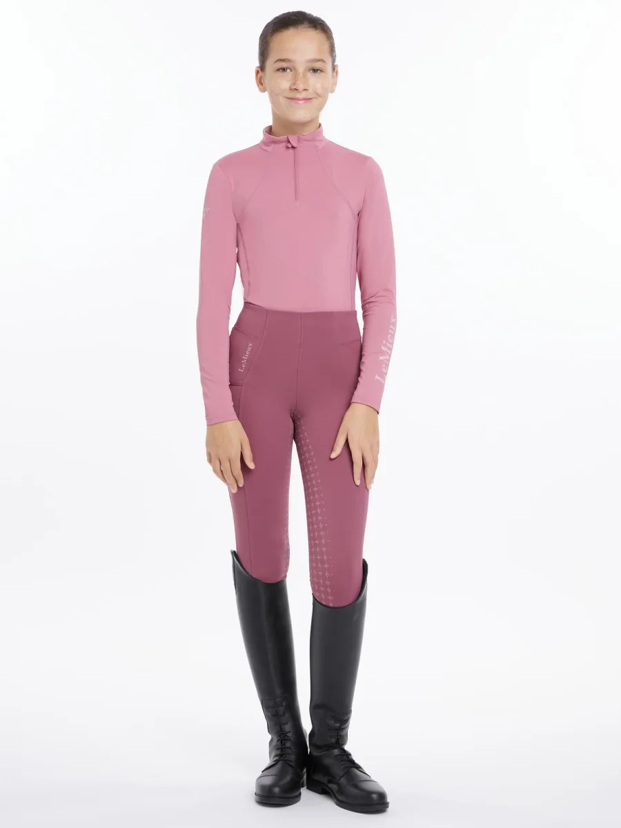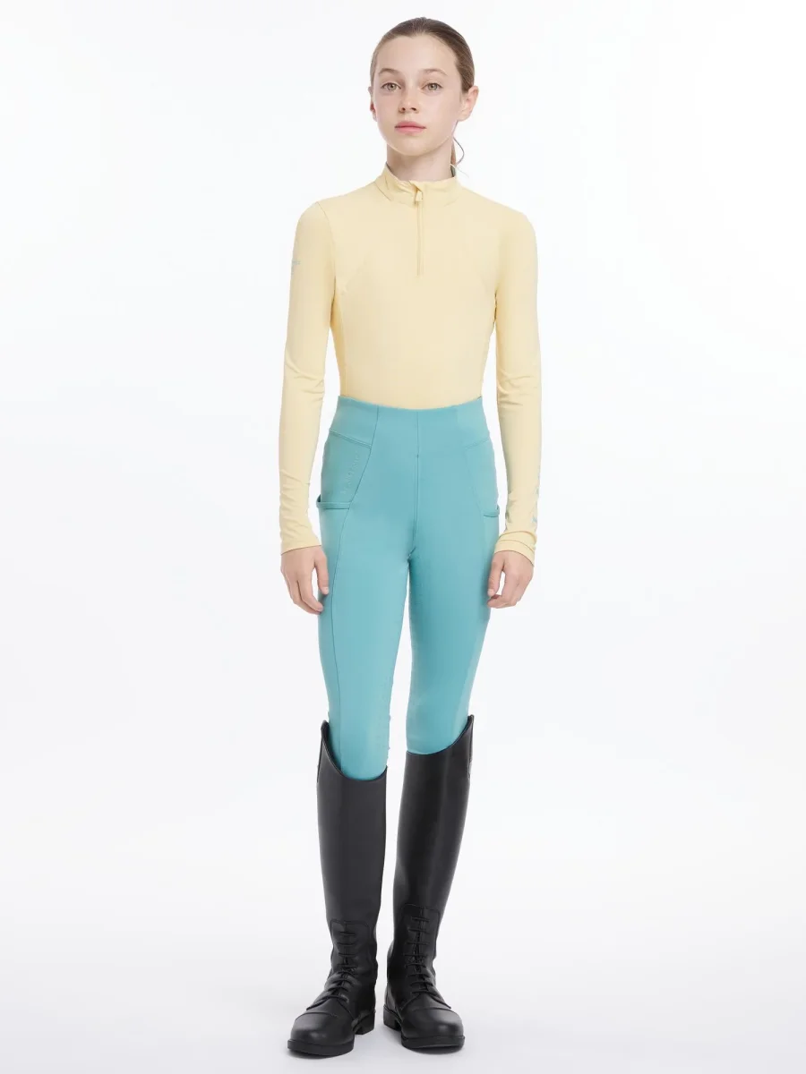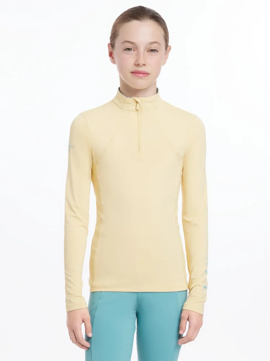 Deze technische baselayer met kwartsrits is ontworpen om de lichaamstemperatuur te reguleren en biedt daarbij UV50+ bescherming tegen zonnestralen. Perfect voor actieve jonge ruiters! Ventilatie onder de armen houdt je koel en droog, en de unieke technische stof voert vocht af van de huid voor optimaal comfort.