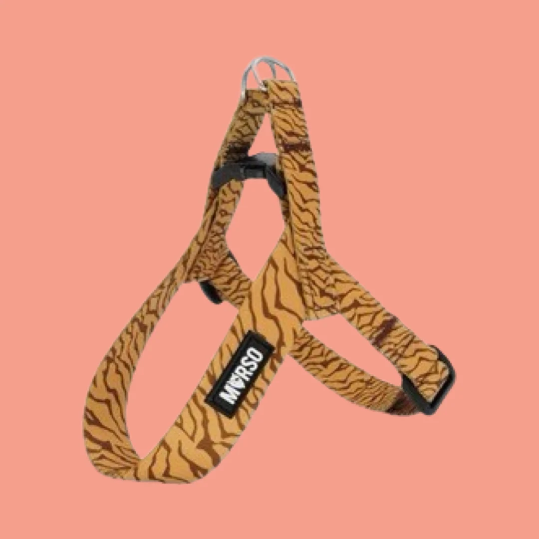 Ontdek het Morso Mini Hondentuig, een ware blikvanger voor de kleinere avonturier. Dit is geen doorsnee tuigje, nee, het is met zorg ontworpen voor comfort én stijl. Het unieke jungle drum patroon in levendig groen brengt direct een vleugje exotische flair in de dagelijkse wandeling – uw hond zal er ongetwijfeld stralend uitzien!