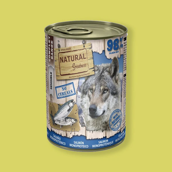 In de keuken van Natural Greatness weten ze precies wat ze doen. Het Natural Greatness Monoproteic Salmon Recipe natvoer is gemaakt van zalm als enige bron van eiwitten, plus groenten en fruit, samen met de pawfecte mix van vitamines en mineralen. Je harige vriend zal zich na het eten van deze maaltijd kiplekker voelen. Het eten van deze maaltijd zorgt voor een glanzende vacht, een gezonde huid en een betere vitaliteit. Oftewel, voor je hond voelt dit alsof ‘ie in een sterrenrestaurant aan het eten is.