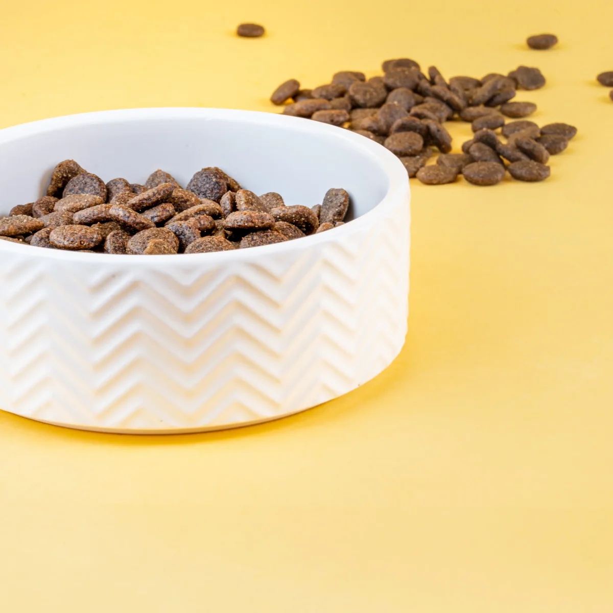 Deze premium hondenvoeding, geleverd in een stevige zak Natural Woodland Country Diet hondenvoer, is klaar om uw hond dagelijks te verwennen met een voedzame en smaakvolle maaltijd. Ziet u die bruine, ronde hondenbrok? Dat is kwaliteit in elke hap, of het nu op een gele achtergrond ligt voor de foto, of in de favoriete zigzagkom van uw viervoeter.