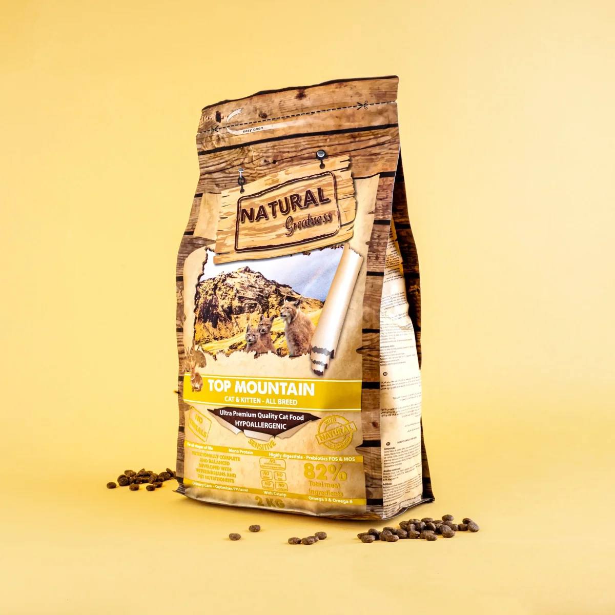 Weet u, als we het hebben over écht goed kattenvoer, dan bedoelen we iets als dit: Natural Greatness Top Mountain. Een receptuur die met de grootste zorg is samengesteld, want een gezonde kat, zeker een kitten in de groei of een jonge avonturier, verdient toch niets minder dan het allerbeste? Dit is géén alledaags brok; dit is een ware bergschat, speciaal voor uw geliefde viervoeter.