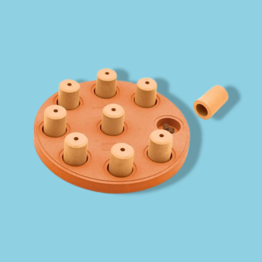 De robuuste composiet constructie betekent dat deze puzzel een stootje kan hebben en verrassend eenvoudig schoon te maken is – wel zo praktisch! De houten pinnen voegen een natuurlijke, tactiele dimensie toe waar honden dol op zijn, en geven de puzzel bovendien een authentieke uitstraling. Een slim ontwerp, vinden wij, dat zowel functioneel als esthetisch is.