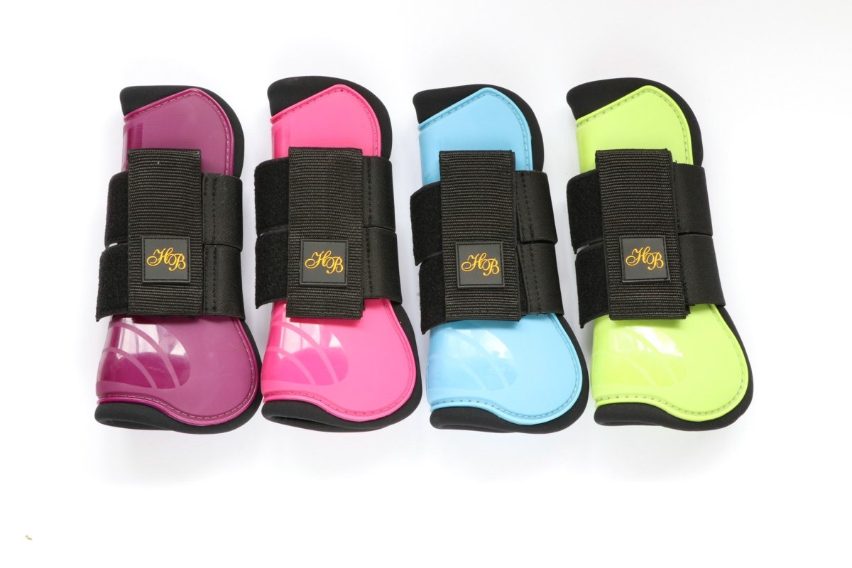 De Peesbeschermers van HB Ruitersport combineren functionaliteit met stijl dankzij de opvallende kleurenlijn inclusief fuchsia, lichtblauw, lime, paars, wit en zwart. Deze beschermers zijn voorzien van een speciale uitdieping aan de achterzijde, wat zorgt voor extra draagcomfort en betere pasvorm voor je paard. Geschikt voor zowel pony’s als paarden (Full en Pony maat), biedt deze peesbeschermer betrouwbare bescherming tijdens training en wedstrijden. Idealiter te combineren met de matching strijklappen Shine voor een complete en modieuze beschermingsset.