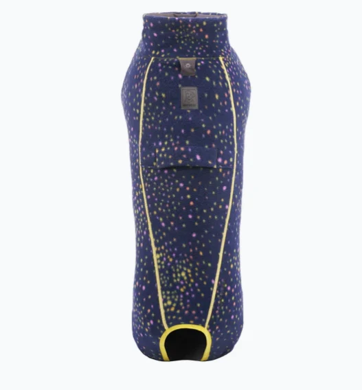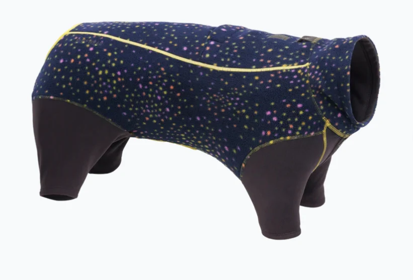 De zachte, gerecyclede polyester fleece houdt warmte vast en droogt snel. Dankzij de voorgevormde StormSleeves™ met 4-way stretch sluiten de pijpen perfect aan, waardoor warmte beter behouden blijft en je hond vrij kan blijven bewegen. Reflecterende details verhogen de zichtbaarheid bij weinig licht en via de handige opening op de rug kan de overall over de meeste tuigjes worden gedragen.