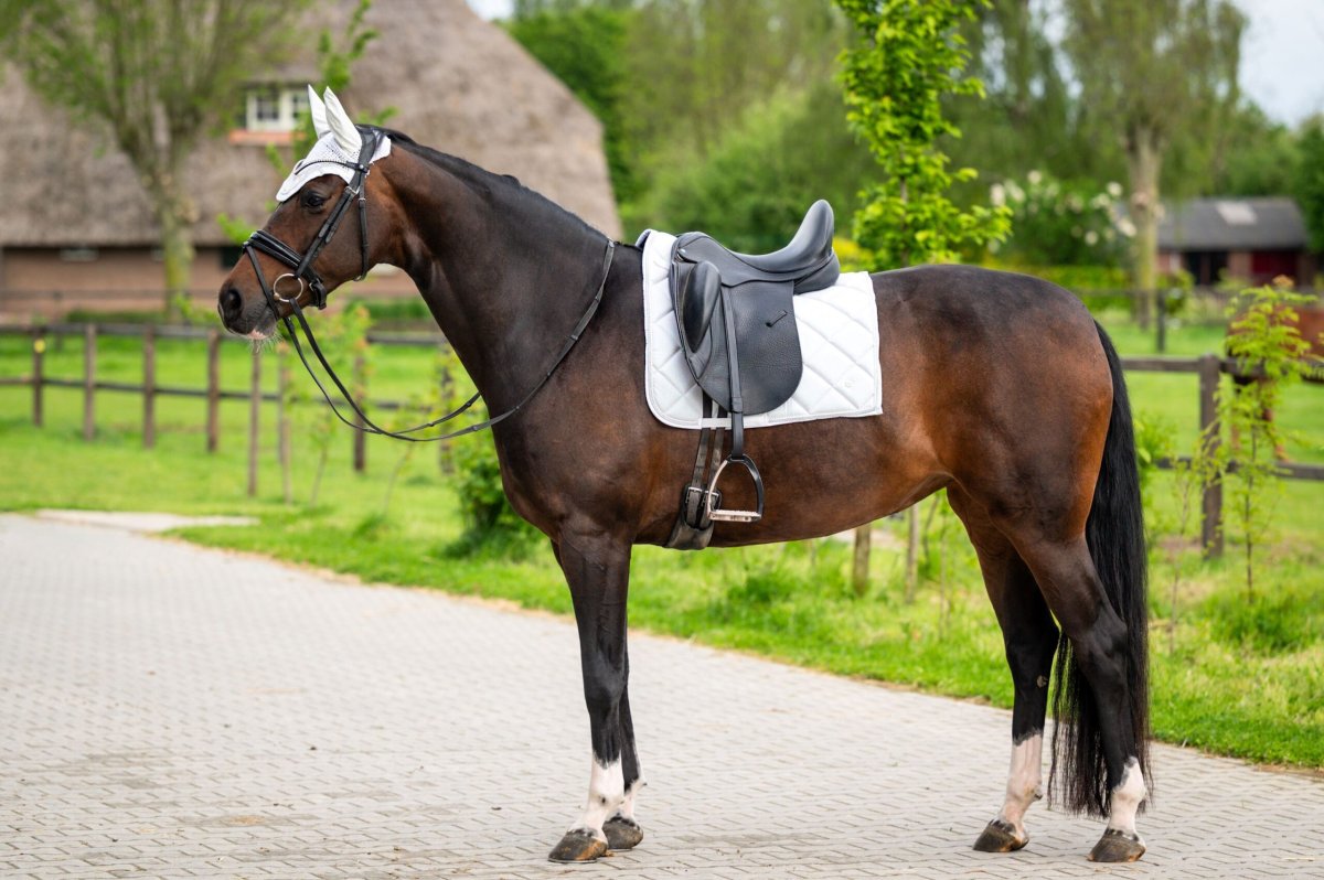 Het dekje is verkrijgbaar in de maat Full dressuur en wordt snel vanuit voorraad geleverd. Voor een volledige en afgestemde outfit kan het gecombineerd worden met het bijpassende oornetje in dezelfde kleur.