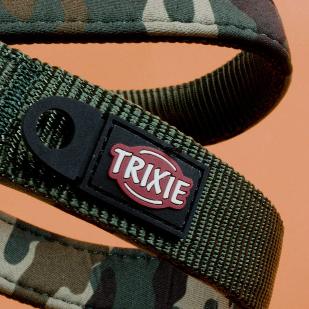 Oelala, de Trixie Premium Hondenriem Dubbelgestikt Verstelbaar Camouflage Groen is de perfecte mix tussen duurzaamheid en functionaliteit. Deze hoogwaardige hondenriem is van prachtig nylon gemaakt en is naast dat ‘ie ontzettend mooi is, ook nog eens stevig. De riem is makkelijk te verstellen en is voor meerdere doeleinden geschikt.
