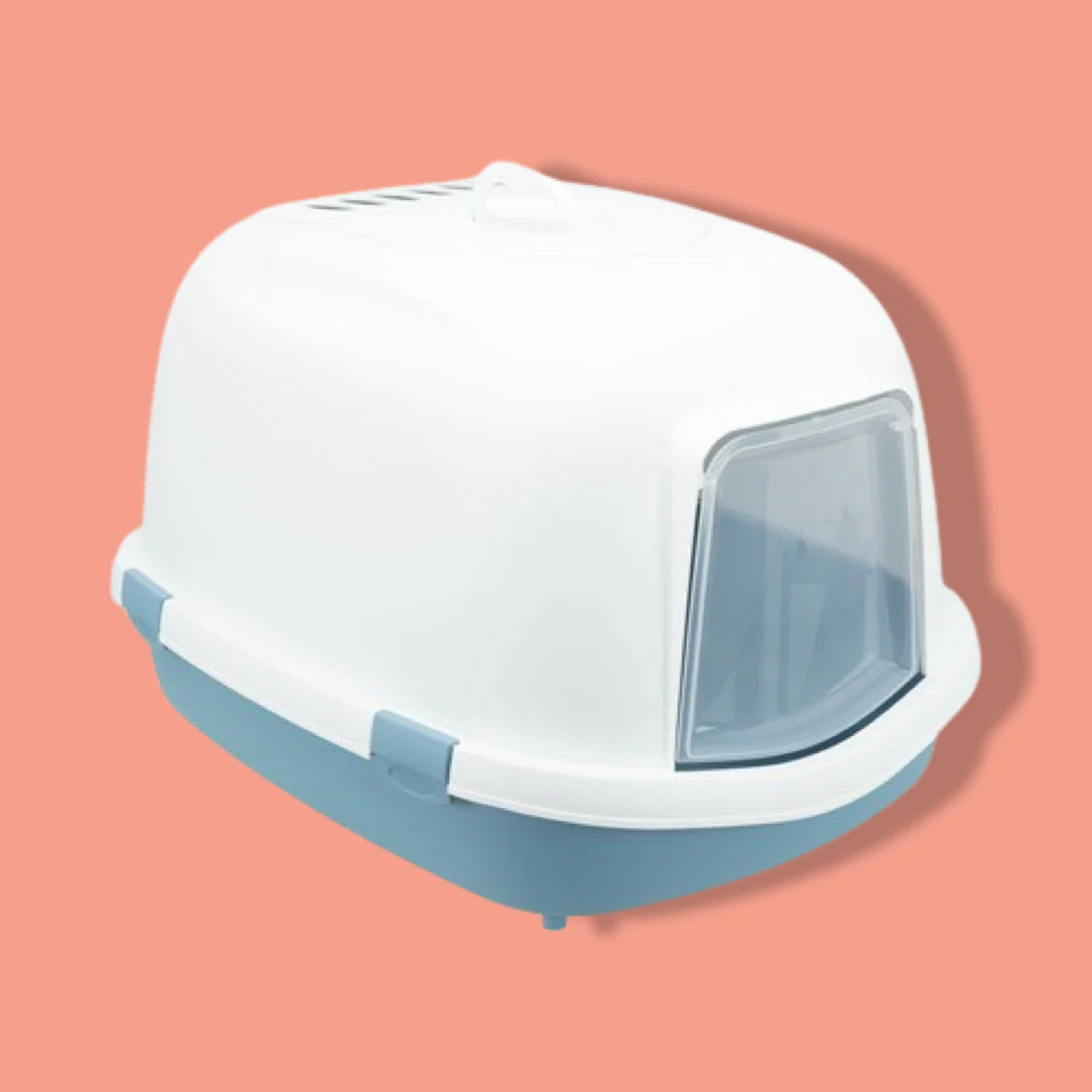 Trixie Kattenbak Primo XXL Top Met Kap Blauw / Wit is een kattentoilet voor grote katten, van extra groot formaat met kap, klep en koolfilter.