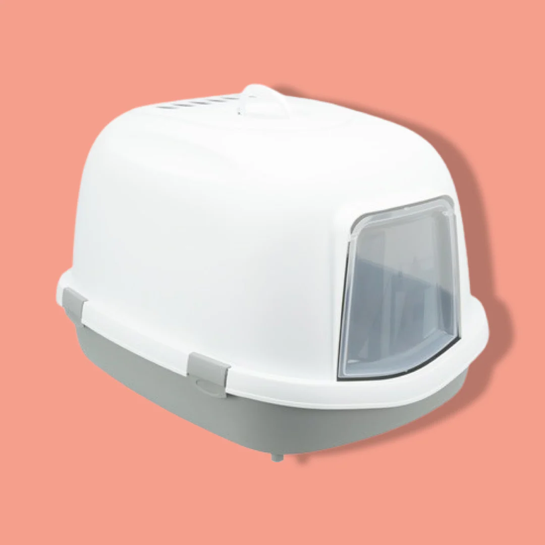 De Trixie Kattenbak Primo XXL Met Kap Grijs / Wit is een extra grote kattenbak, met filter van actieve koolstof en slipvaste rubberen voetjes. Deze kattenbak is ideaal voor grote kattenrassen, zoals Maine Coons en Noorse Boskatten. De kattenbak is van extra groot formaat en uitgevoerd met kap. Het filter van actieve koolstof voorkomt nare geurtjes rondom de bak en de rubberen voetjes zorgen ervoor dat de kattenbak niet verschuift wanneer de kat in en uit de bak stapt. Door de Easy-Click sluitingen maak je de kap gemakkelijk los om de bak te verschonen. Gemaakt van stevig kunststof met een moderne grijze onderbak en witte kap.