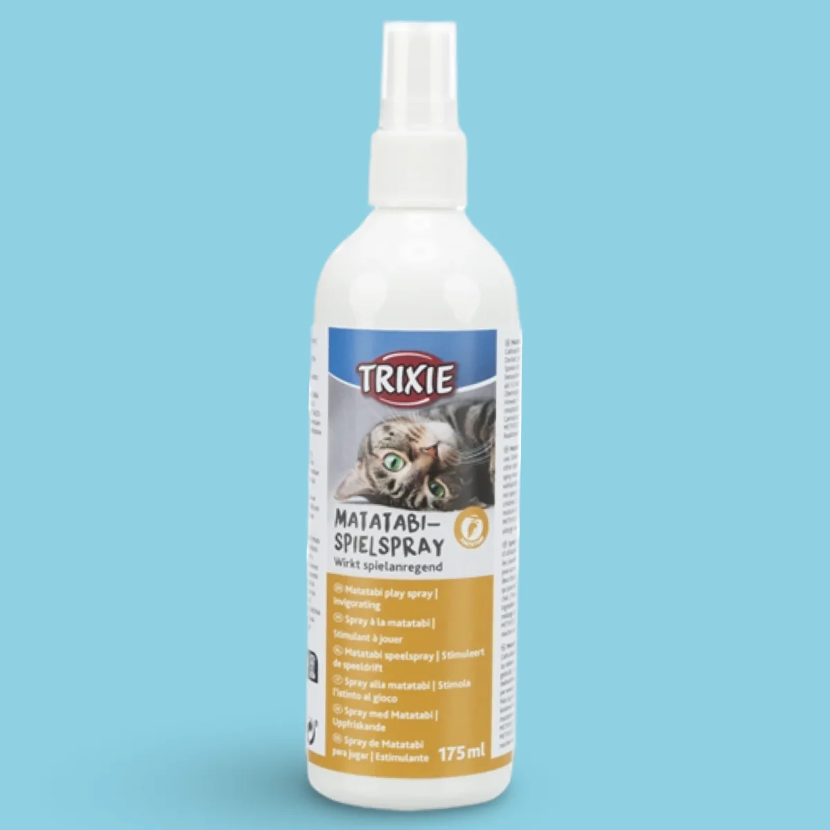 De Trixie Matatabi Katten Speelspray is een handige spray met matatabi extract om op speeltjes te sprayen. Heb jij speeltjes gekocht voor jouw kat waar hij of zij eigenlijk niet echt naar omkijkt? Met deze matatabi spray maak je het weer interessant! Matatabi is een Aziatische plant met ongeveer hetzelfde effect als catnip. Het effect van matatabi lijkt echter wat sterker te zijn dan dat van catnip.