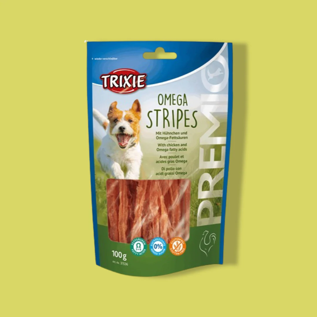 Hey, jij daar! Wist je dat de Trixie Premio Omega Stripes Kip de pawfecte hondensnacks zijn? Het zijn compacte snacks van kippenborst voor de hond, uit 85% vlees zonder gluten en toegevoegde suikers en met omega-3 en omega-6 vetzuren. Je viervoeter zal shinen als nooit tevoren na het eten van deze snacks! 😉