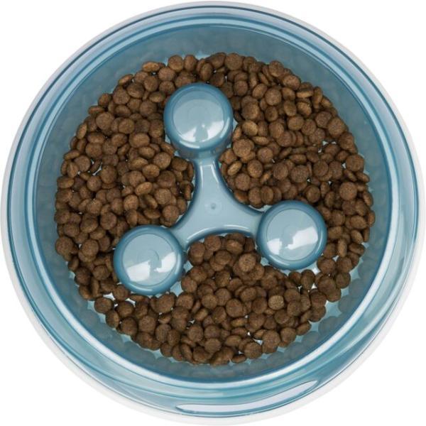 De Trixie Slow Feeding kunststof voerbak helpt effectief om schrokken tijdens de maaltijd te voorkomen. Dankzij het speciale ontwerp wordt het voer verdeeld over verschillende verhogingen in de bak, waardoor je hond rustiger eet en beter kauwt. Dit ondersteunt een gezonde spijsvertering en vermindert de kans op verslikken.