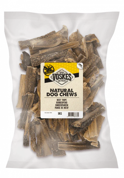 Natuurlijke, gedroogde runderpens. Deze gewilde hondensnack is gemaakt van 100% rundvlees. De runderpens zorgt voor veel en lang kauwplezier en draagt hierdoor bij aan de gezondheid van het gebit.