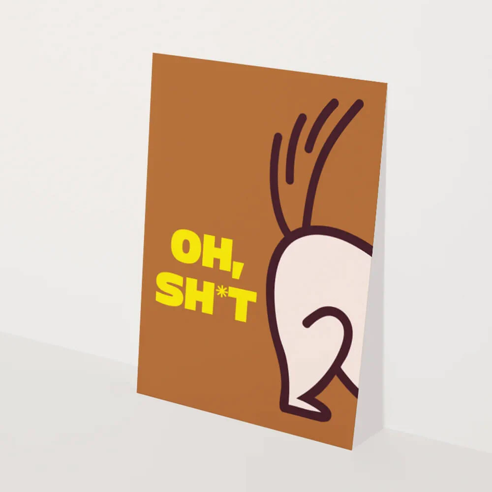 Oh shit. Soms gaat er iets mis. Soms heel klein, soms net wat groter. Van kapotte sneakers tot scheetjes op onverwachte momenten. Met een hond in huis horen ongelukjes erbij. Deze Heyday hondenkaart haalt de spanning weg, maakt het luchtig, grappig en is precies de knipoog die je soms nodig hebt.